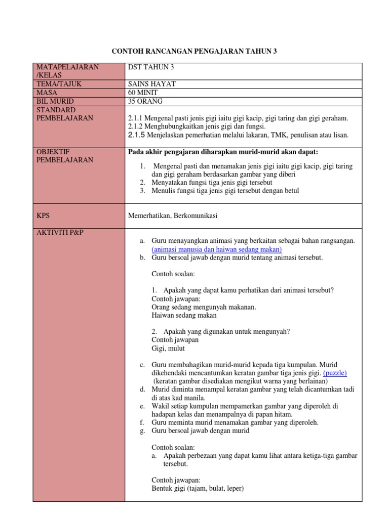 Contoh Rancangan Pengajaran Tahun 3 Dst Pdf